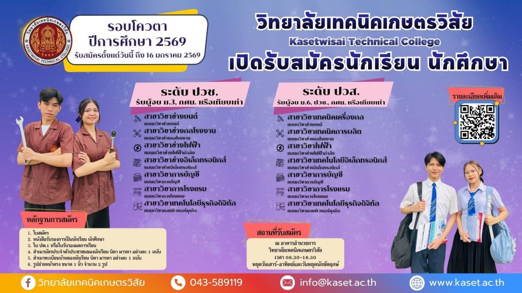 วิทยาลัยเทคนิคเกษตรวิสัย 231 หมู่ที่ 3 ต.เมืองบัว อ.เกษตรวิสัย จ.ร้อยเอ็ด 45150