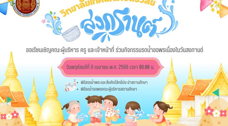 News ชาติ ศาสน์ กษัตริย์ บุคลากร ประชาสัมพันธ์ วิทยาลัยเทคนิคเกษตรวิสัย ร่วมสืบสานวัฒนธรรมไทย “ประเพณีรดน้ำดำหัวผู้ใหญ่” เนื่องในวันสงกรานต์ 2569 8 เมษายน 2026 Webmaster กิจกรรม, ข่าวทั่วไป, บุคลากร Read more